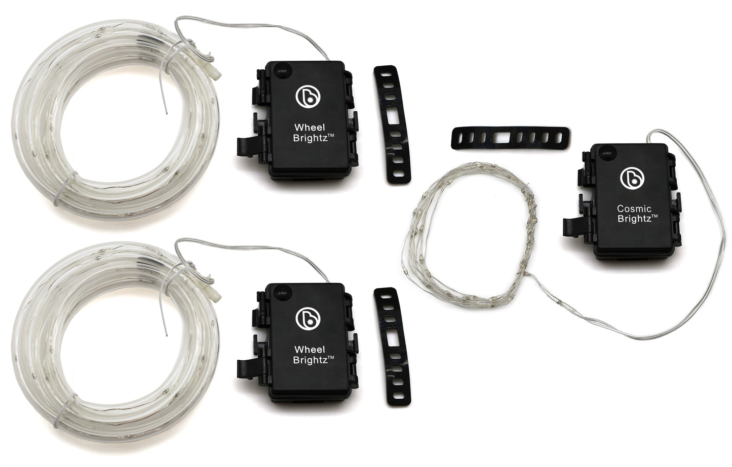 Light up your bike with one easy bundle pack! Contains 2 Wheel Brightz and 1 Cosmic Brightz to light up your ride! Wheel Brightz use 20 Micro LED lights to create a ring of brilliant color that is sure to turn heads and grab attention wherever you go. Cosmic Brightz 40 ultra-bright micro LED lights wrap around any bike frame to make it appear out of this world. Ages: 5 years plus